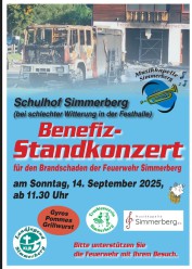 Die Musikkapelle, der Trachtenverein und die Landjugend Simmerberg veranstalteten am 14. September ein Benefiz-Konzert für den Brandschaden an unserem Feuerwehrhaus und den Fahrzeugen. Dabei erfuhren wir eine überwältigende Anteilnahme. Wir möchten uns bei allen drei Vereinen sowie bei allen Besucherinnen und Besuchern ganz herzlich bedanken! Für unsere Feuerwehr sind stolze 3250 Euro bei diesem Benefiz-Konzert zusammengekommen.