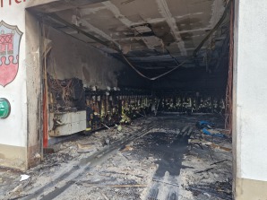Am Montag, den 01.09.2025, um 4:30 Uhr wurde die Feuerwehr Simmerberg zu einem Garagenbrand alarmiert. Am eigenen Feuerwehrhaus stellte sich leider heraus, dass unser eigenes TLF in der Fahrzeughalle in Flammen stand. Trotz schneller Hilfe aus den Nachbarorten wurden beide in der Fahrzeughalle stehenden Fahrzeuge zerstört und auch das Feuerwehrhaus selbst wurde stark in Mitleidenschaft gezogen.