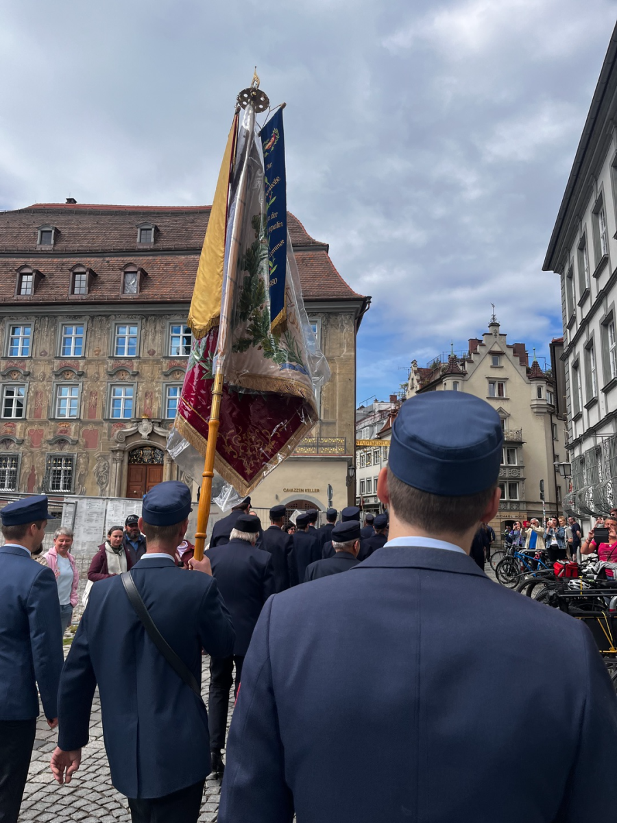 Von der Feuerwehr Lindau wurden wir zusammen mit allen Feuerwehren des Landkreises zur traditionellen Floriansmesse eingeladen. Diese findet immer am 4. Mai statt, dem Namenstag des heiligen Florians, des Schutzpatrons der Feuerwehr. Nach einer gemeinsamen Busfahrt mit den Kameradinnen und Kammeraden aus Stiefenhofen, Oberreute und Ellhofen nahmen wir an einer feierlichen Messe teil, bevor es mit einem festlichen Umzug Richtung Frühschoppen ging. Hier erwarteten uns dann ein Weißwurstfrühstück mit Getränken und guter Musik. Nachmittags ging es gemeinsam wieder Richtung Heimat.